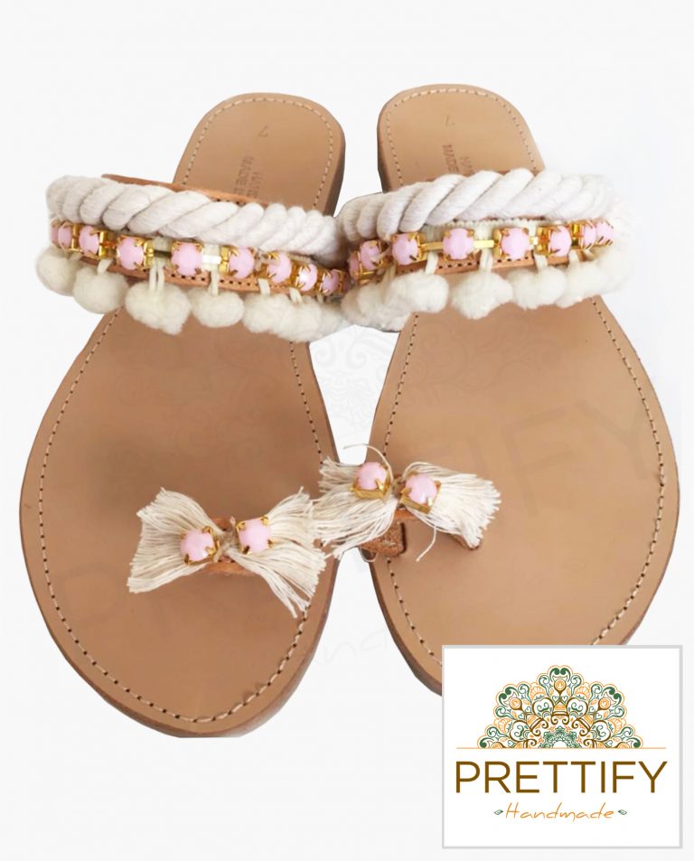 Σανδάλια Boho Style σε ροζ-μπεζ απόχρωση με πον πον και ροζ πέτρες..  Ο απόλυτος Καλοκαιρινός συνδυασμός..