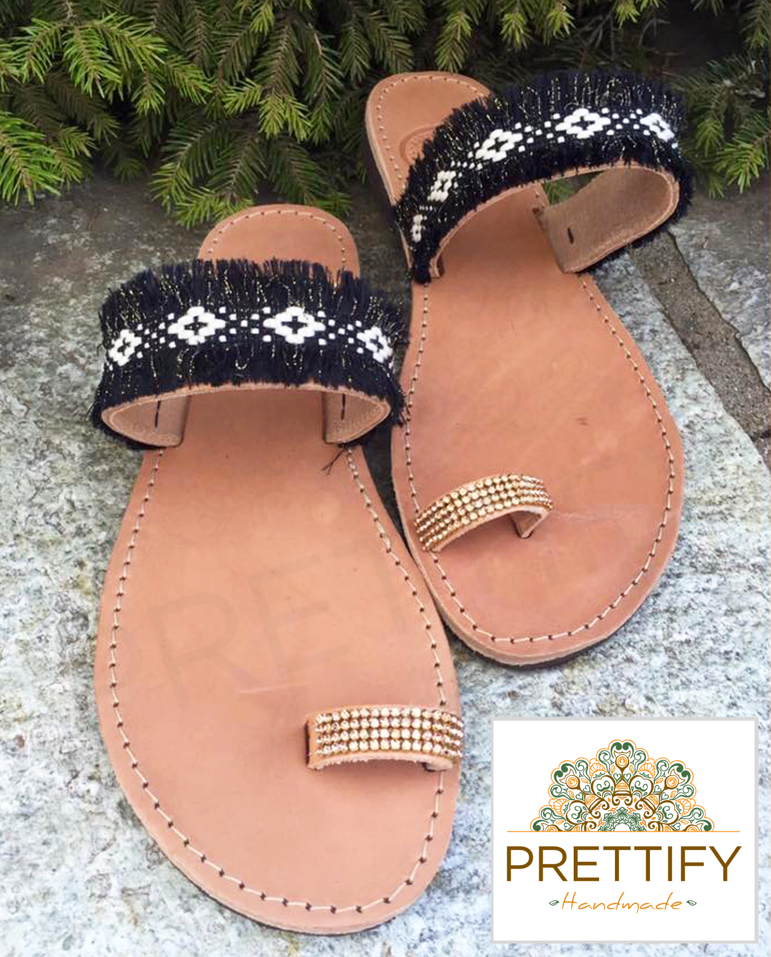 Χειροποίητα σανδάλια σε boho style με στρας
